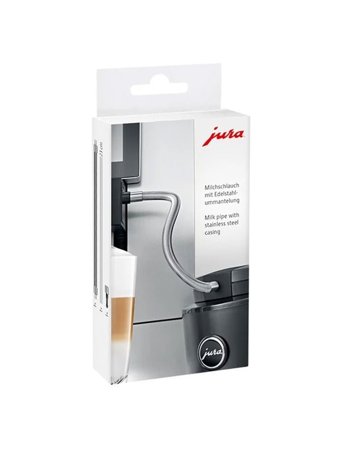 Encased in a high-quality stainless steel coil spring, the milk pipe connects the milk container to the milk spout and makes the perfect finishing touch to the elegant design of your coffee machine. The opaque casing of high-quality material guarantees optimum protection against UV rays and the effects of light. Precision-fit connectors ensure airtight connections. Ready for use right away, this milk pipe offers the ideal solution for optimum milk hygiene every time.